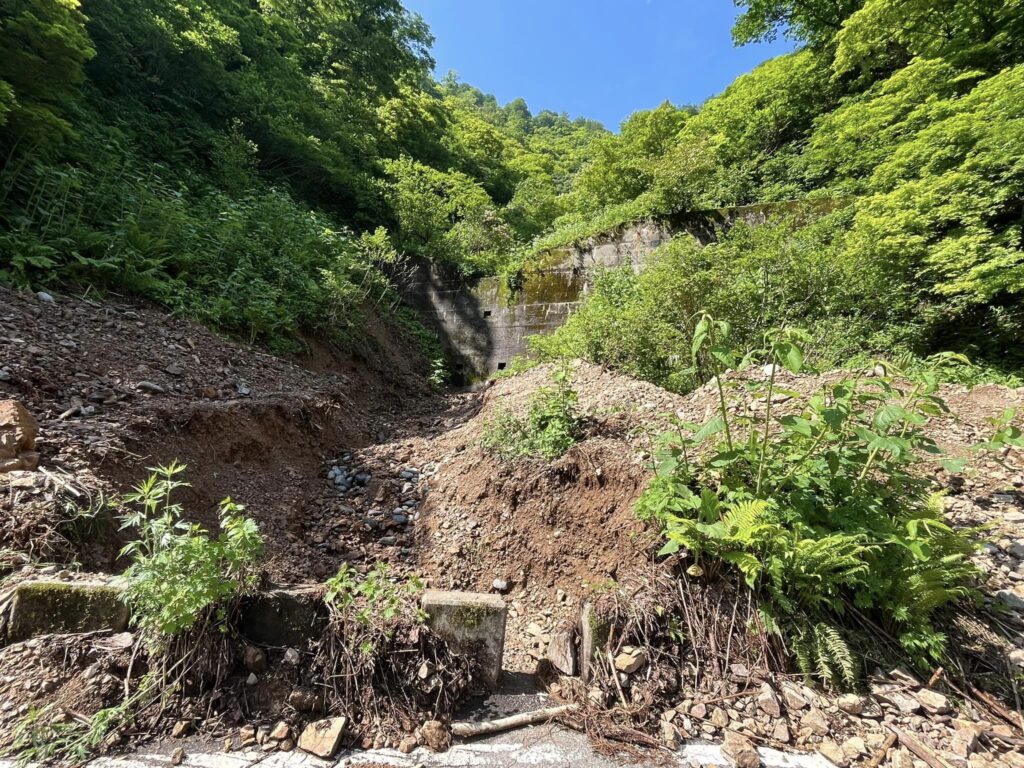 途中、以前より崩落していた箇所は、車が通れるように復旧されており、業者の皆様、有り難うございました。しかし所々に崩落斜面があり自然の怖さを感じます。