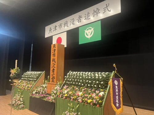 本日、夏空の中で富山県忠霊塔(富山市八ケ山)において遺族会の皆さんがお集まりになって、戦没者慰霊祭がおこなわれました。