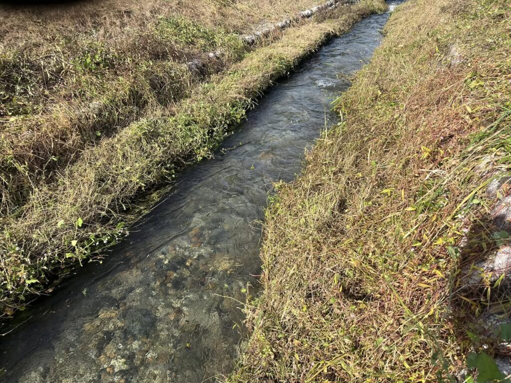 また、地区を流れる用水は清らかで水量もあり、まさしく清流そのものです。2時間ほどの草刈りでしたがイイ汗流せました。